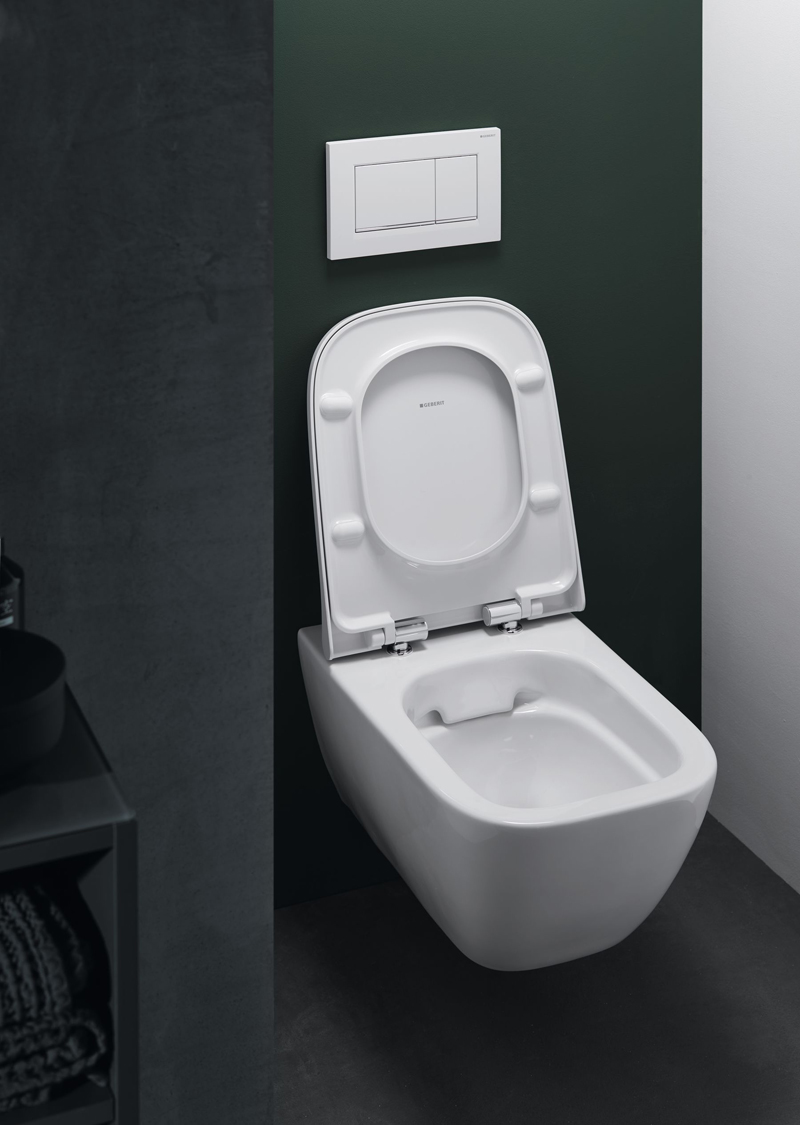 Унитаз подвесной Geberit SMYLE SQUARE безободковый, с быстросъемным сиденьем микролифт (500.685.01.1